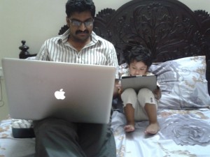 Following dad’s steps 😉 Good to see you guys together…working seriously …!!!